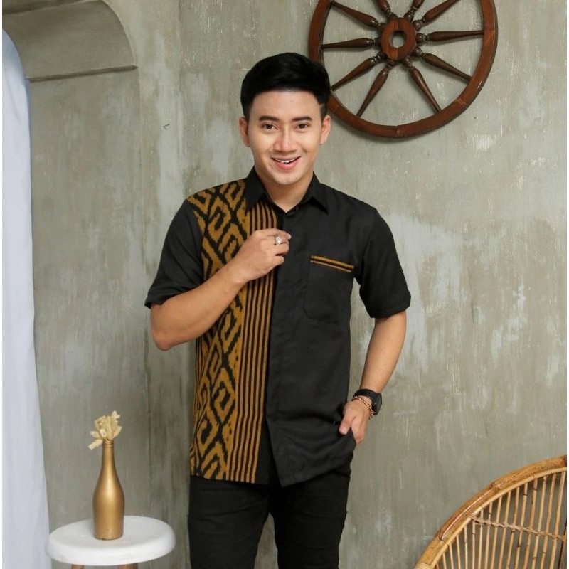 New Couple Naura Black kuningan mengkilap - Baju Batik Tenun Sarimbit