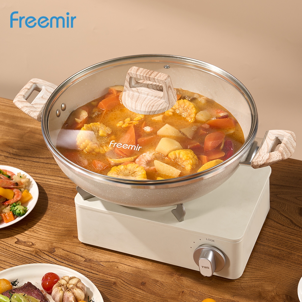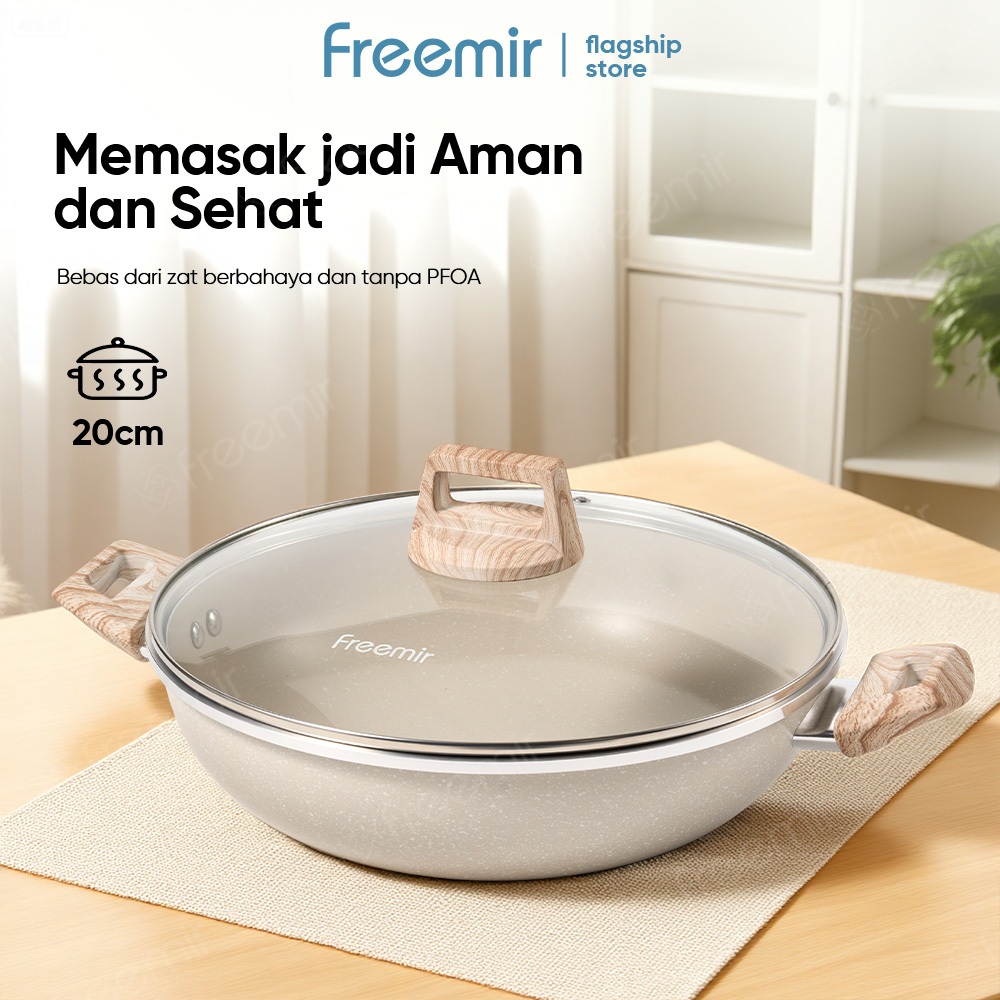 [Mall] PANCI ANTI LENGKET KERAMIK FREEMIR WAJAN ANTI LENGKET 30CM DENGAN TUTUP KACA BEIGE DAN HITAM SERBAGUNA MURAH