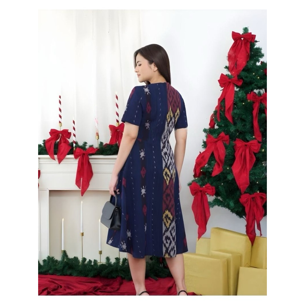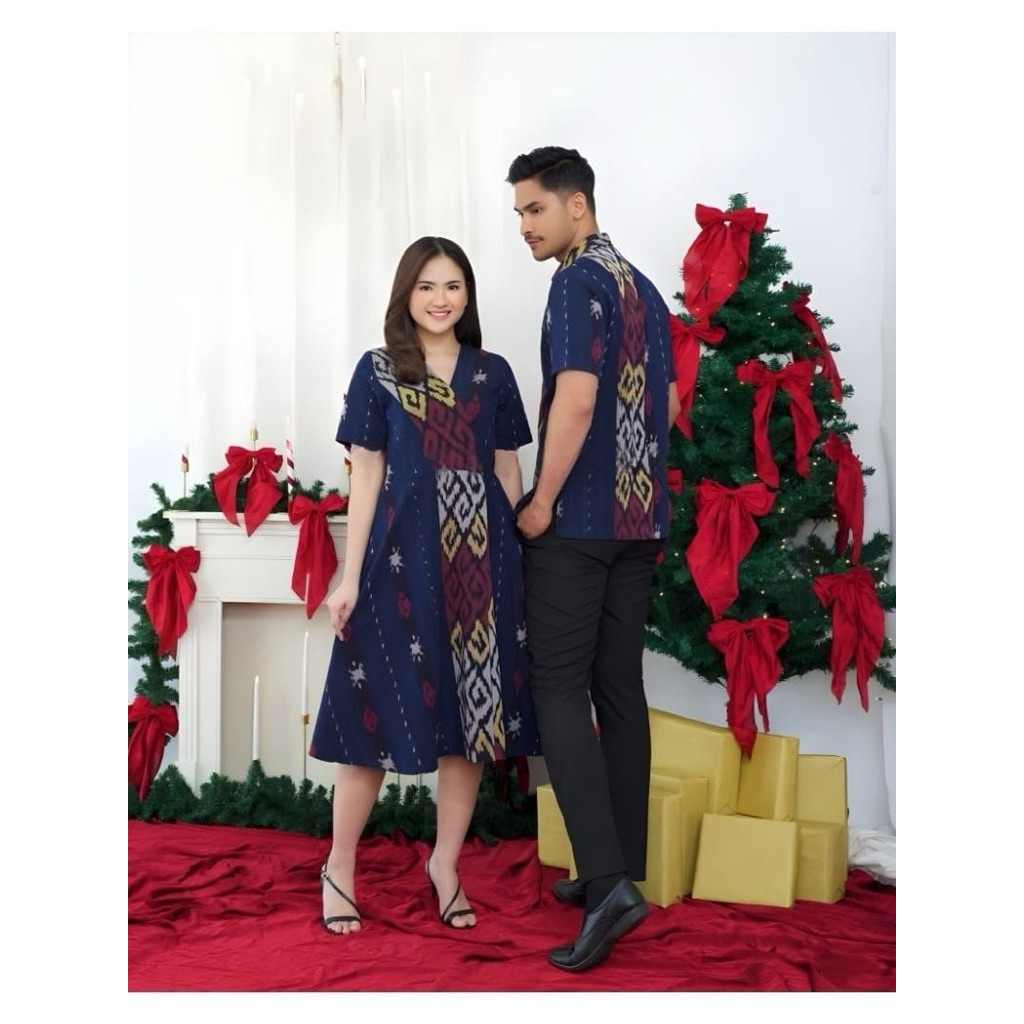 New Series Gayatri Dress Biru Set Couple Tenun baju pasangan pria wanita Cocok Buat Acara Kondangan Natal Prewedding Lebaran Imlek