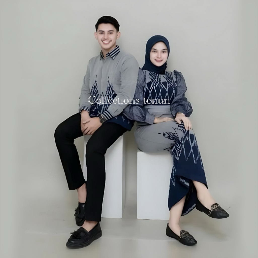 New Series Halis Dress Abu Navy Set Couple Tenun Baju Pasangan Pria Wanita kondangan prewedding natal imlek lebaran