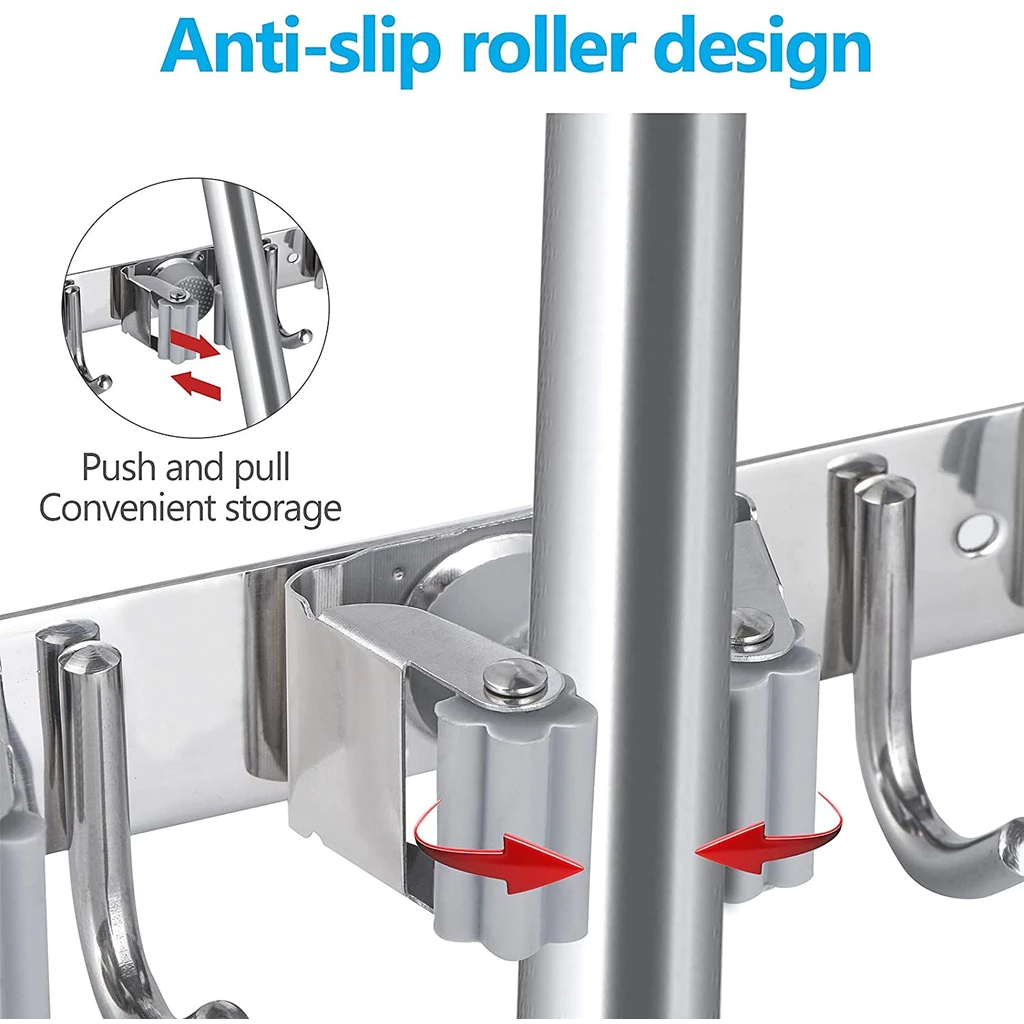 Penjepit Gantungan Sapu Pel Dinding 4 Kait Mop Broom Holder Kapstok Stainless 304 Cantolan Sapu