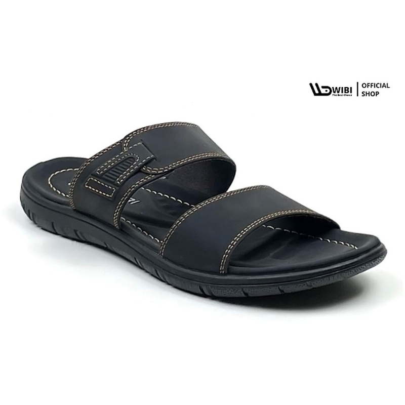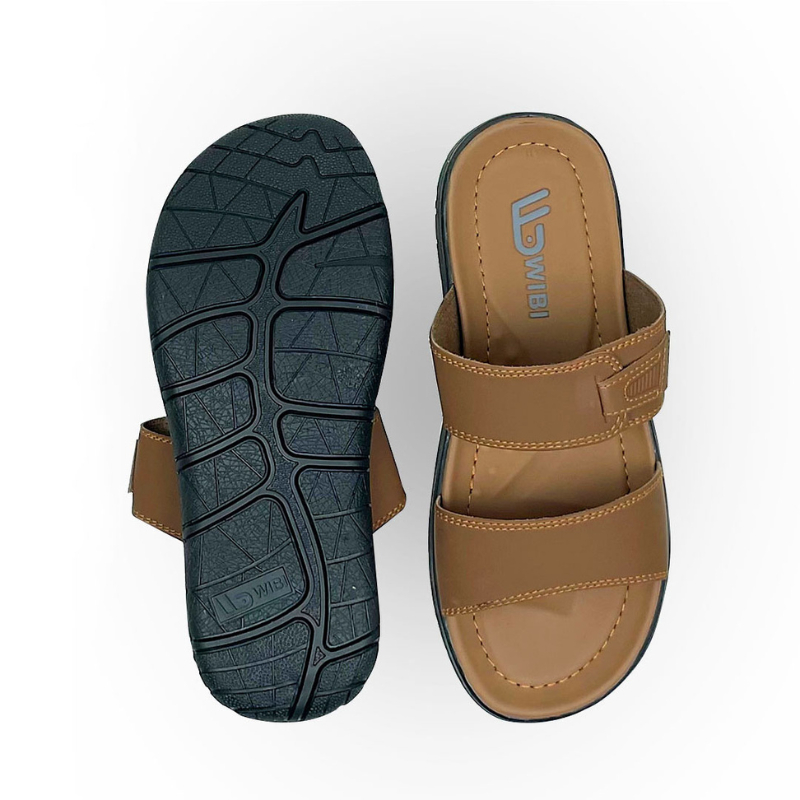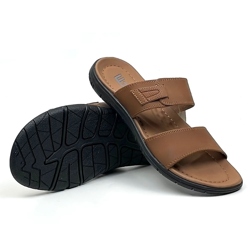 Elegant Low S21-01 Sandal Pria Dewasa Slop Kulit Ban 2 Cokelat tua Size 39 - 43