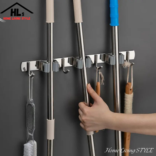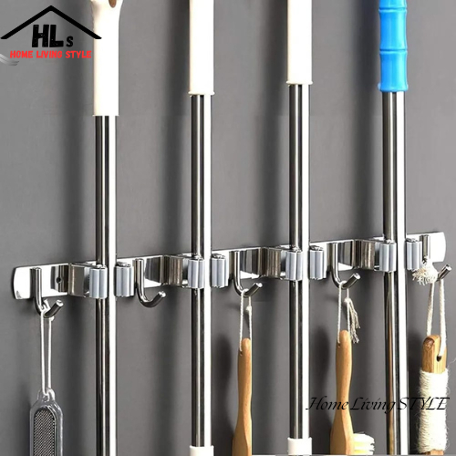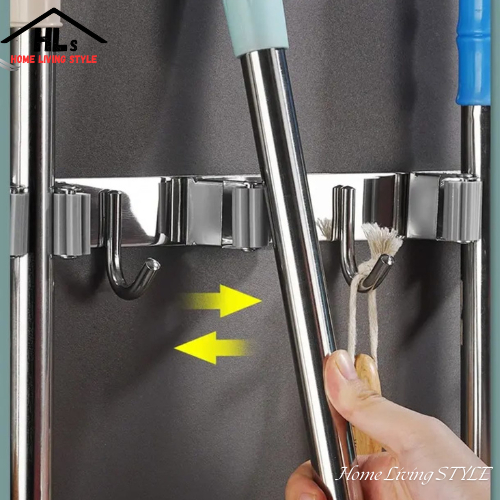 HLS Kapstok Mop Broom Holder Bahan Stainless Steel SUS 304 Penjepit Gantungan Sapu Pel