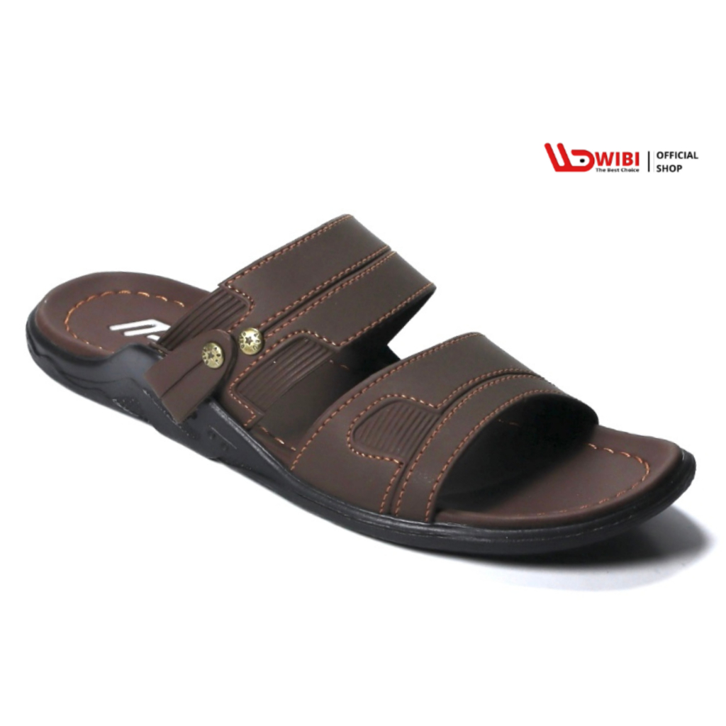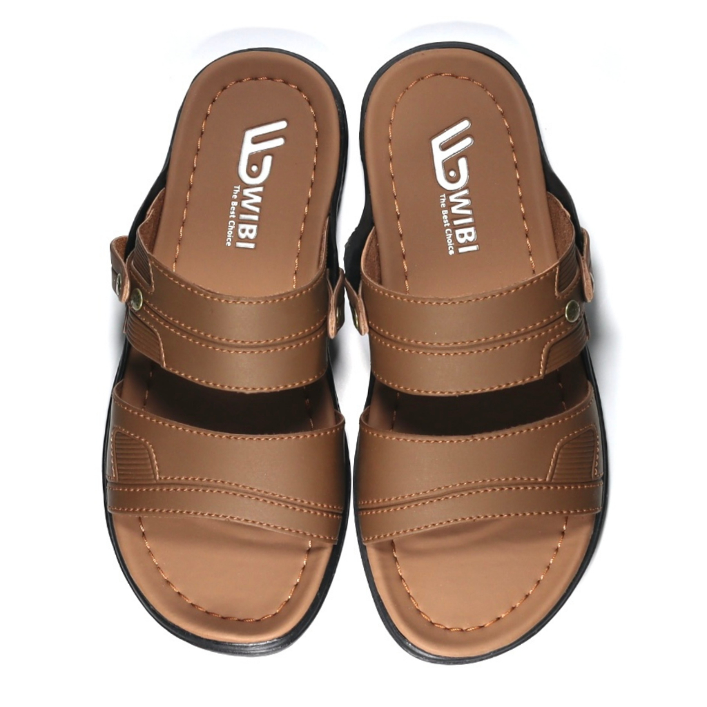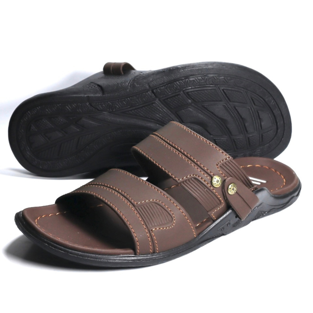 Sandal Pria Dewasa Kulit Slop Ban 2 Cokelat tua Size 39 - 43