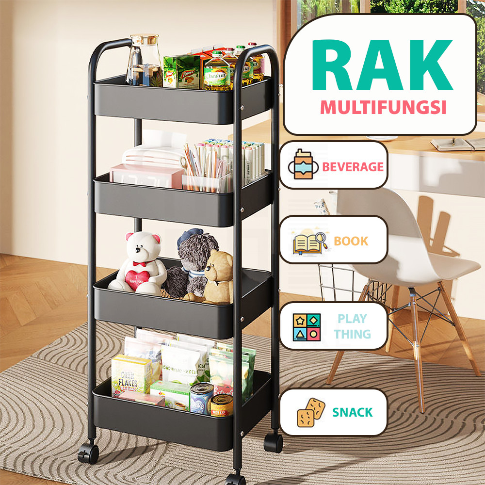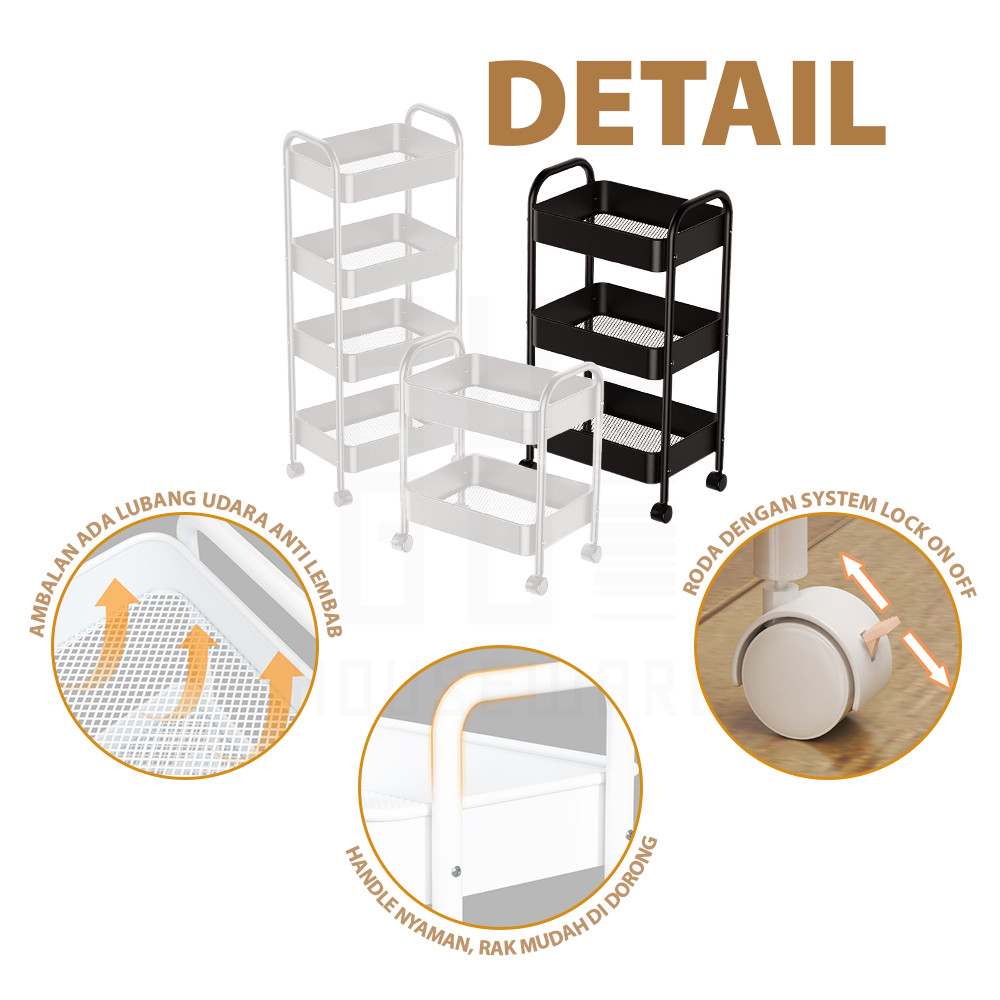 HUGO Rak Dapur Besi Serbaguna Rak Besi Penyimpanan Bertingkat Rak Kamar Mandi Rak Salon Rak Troli Susun