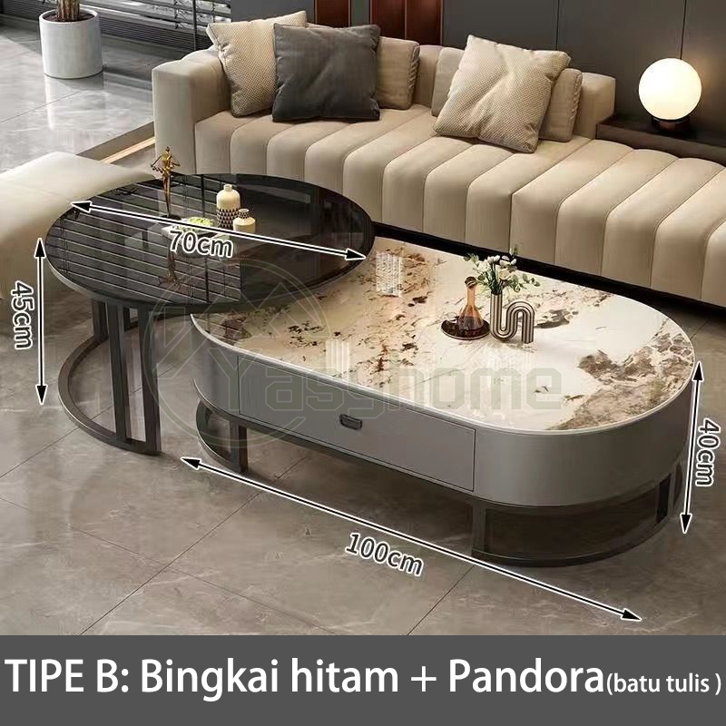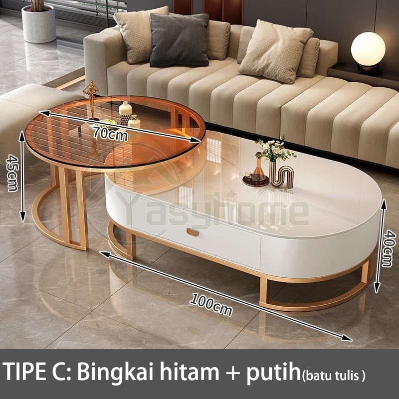 Meja Ruang Tamu Marmer 70+100cm import Meja Ruang Tamu meja multifungsi Kombinasi Gratis Meja Kopi Meja Ruang Tamu