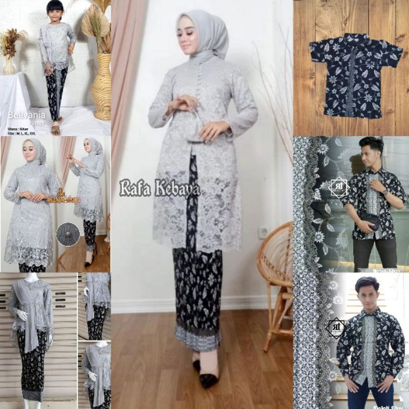 Couple Kebaya Brokat Kancing Depan / Kebaya Busui / Couple Kemeja Batik Melati Silver/ Couple Kebaya Keluarga