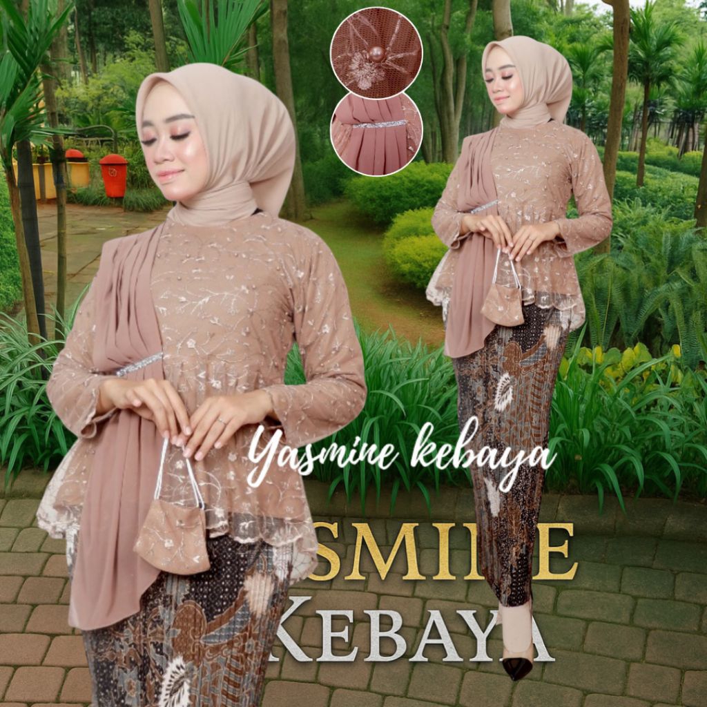 Couple Kebaya Blouse Aurora Selendang Tille Set Kemeja Batik Pria Motif Aurel Mocca / Kebaya Warna Brown