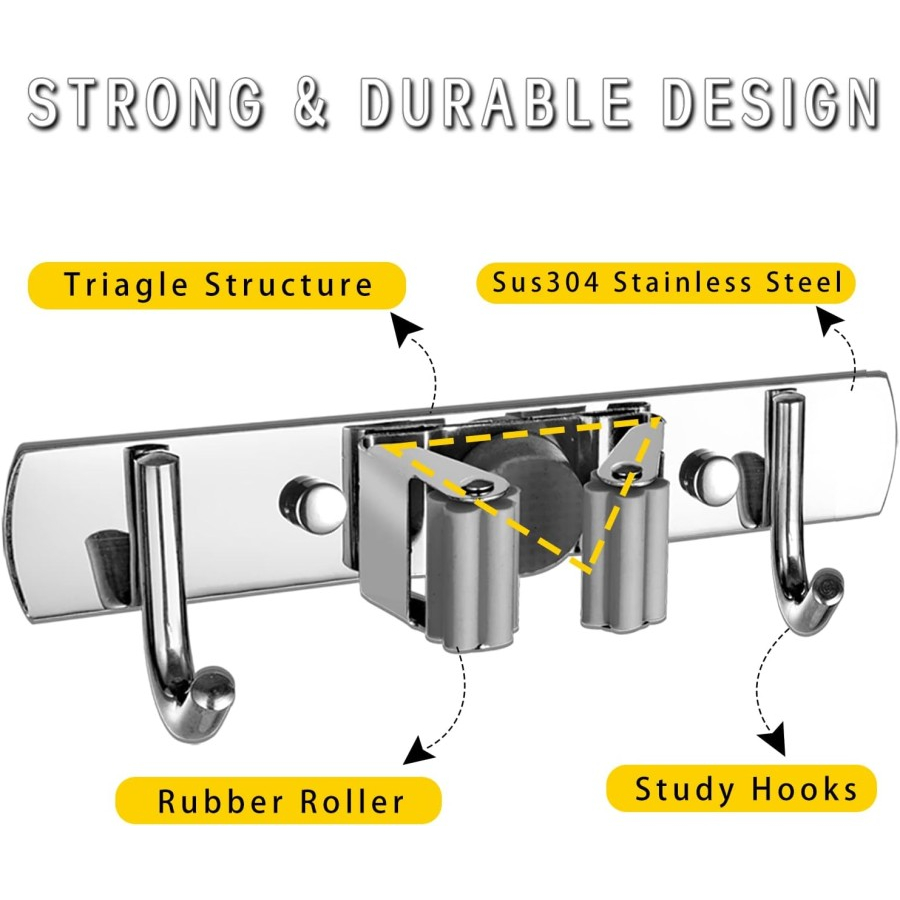 Penjepit Gantungan Sapu Pel Dinding 4 Kait Mop Broom Holder Kapstok Stainless 304 Cantolan Sapu