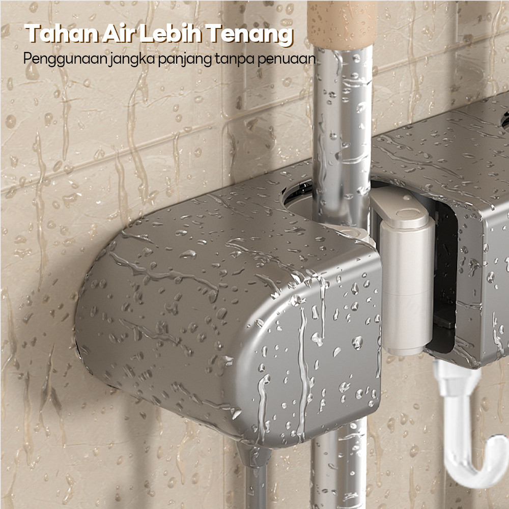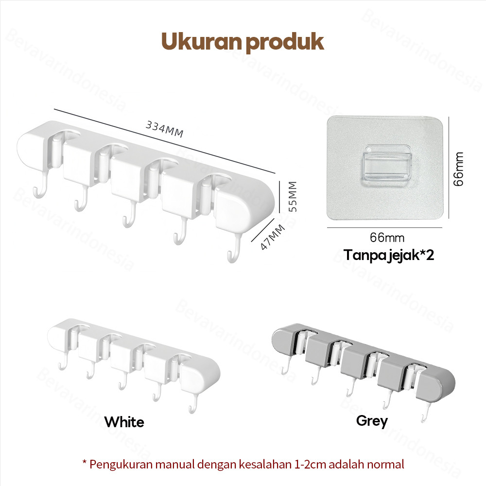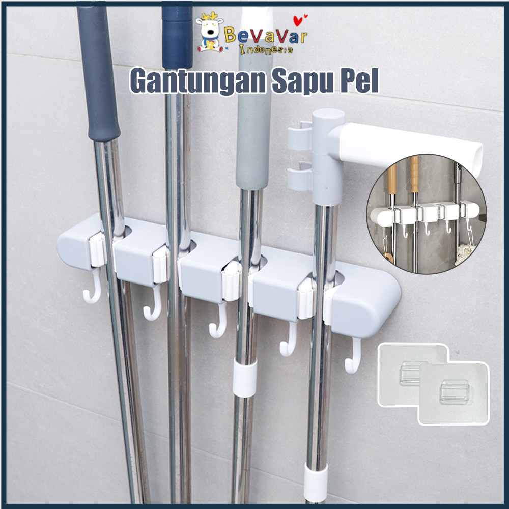 BEVAVAR Hook Gantungan Sapu Pel Tanpa Bor Broom And Mop Holder 4 Klip 5 Kait