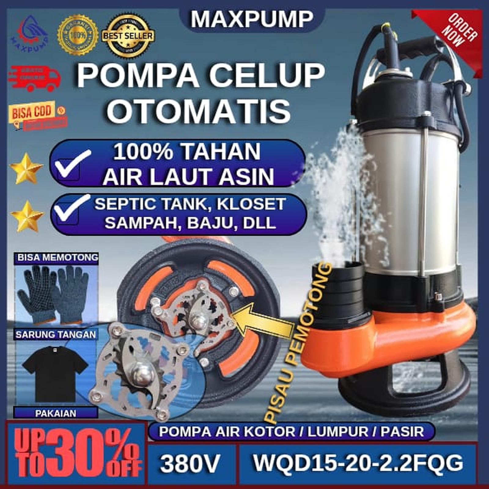 MAXPUMP Pompa Celup Air Kotor + Pisau Pemotong 2Inch 3Hp Pompa Kuras Air Asin Laut Lumpur Banjir Kotoran Septictank