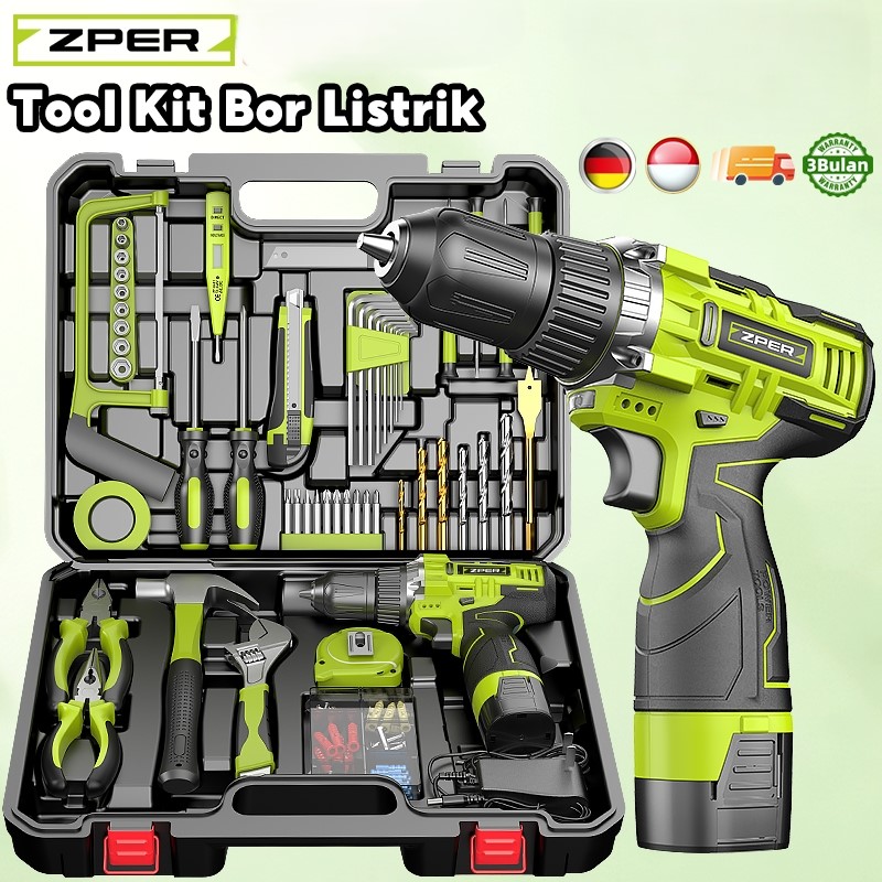 Perkakas Lengkap Bor Listrik Cordless Tang Obeng Palu Kunci Pas Toolkit 124 in1 pcs ZP027