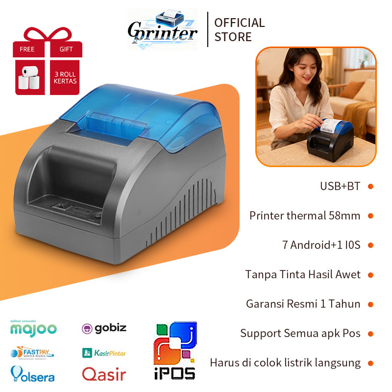free 13 roll kertas popos 58B Printer bluetooth mini printer thermal 58MM pos kasir ppob printer termal