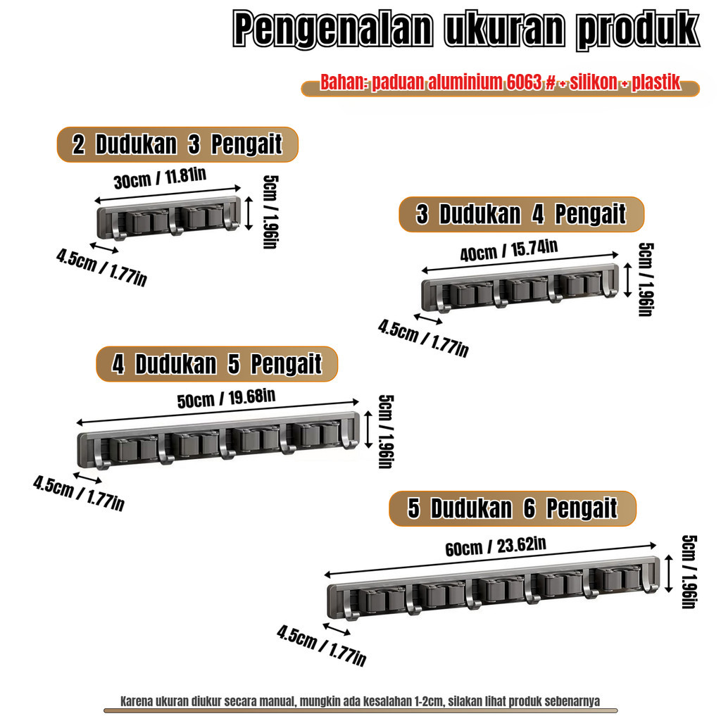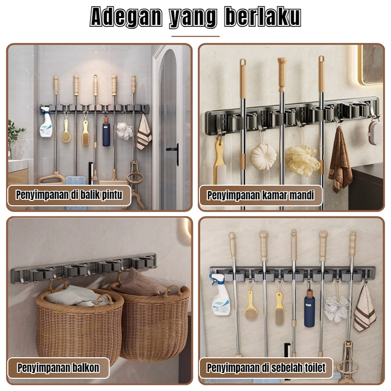 Rak Gantungan Sapu Pel Aluminium Organizer Dinding