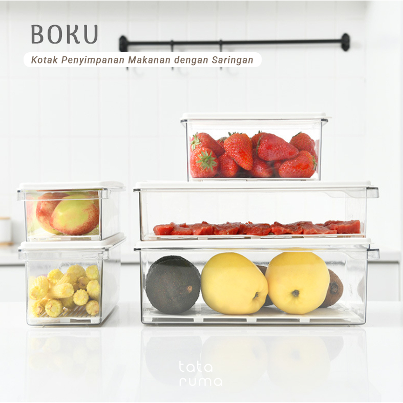 Kotak Kontainer Kulkas TATARUMA Boku dengan Strainer | Tempat Sayur Buah Freezer