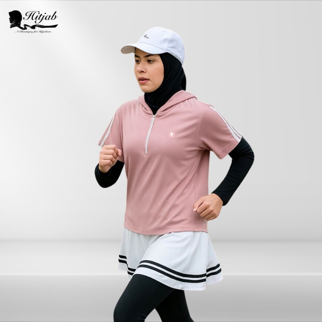 Hoodie Olahraga Wanita Muslim Asymmetric – Jumper Padel Lari Bersepeda 9-0237