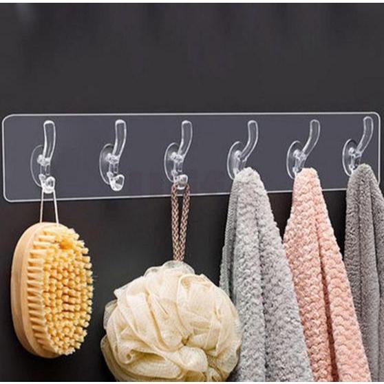 Gantungan Dinding 6 Kait Tempel Dinding Transparan Gantungan 6 Hook Multifungsi