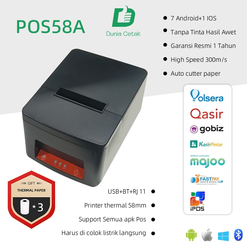FLASH SALE PRINTER BLUETOOTH POSKASIRPPOB AUTOCUTTER 58MM INTERFACE USB BLUETOOTH printer speed 200mms