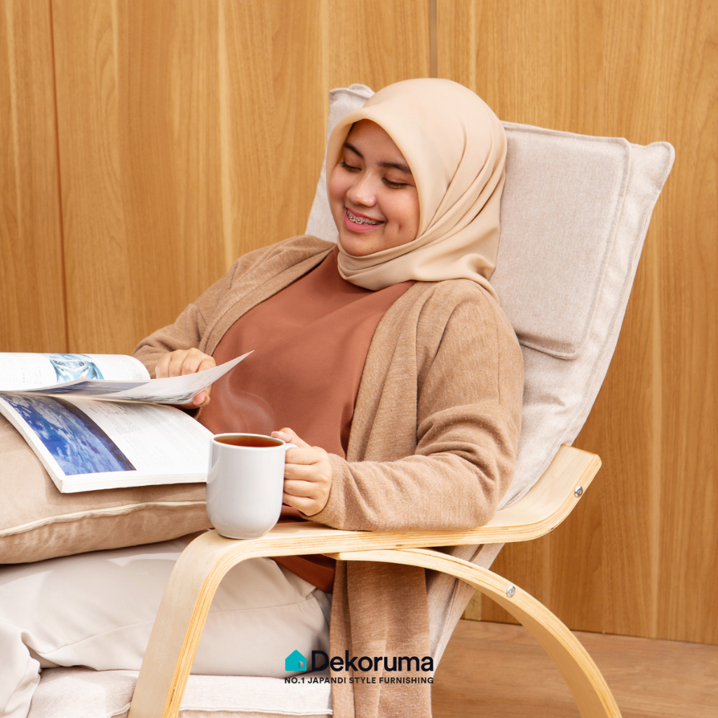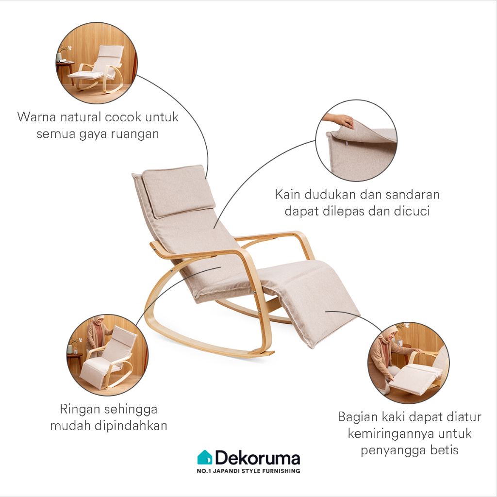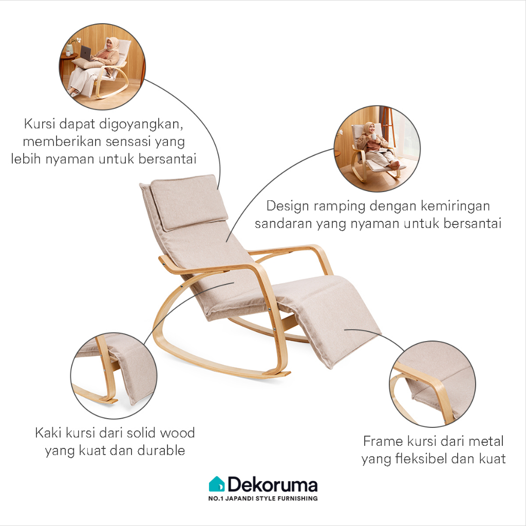 Dekoruma PIKO Kursi Goyang gaya Minimalis / Kursi Santai Dudukan Kain - Krem