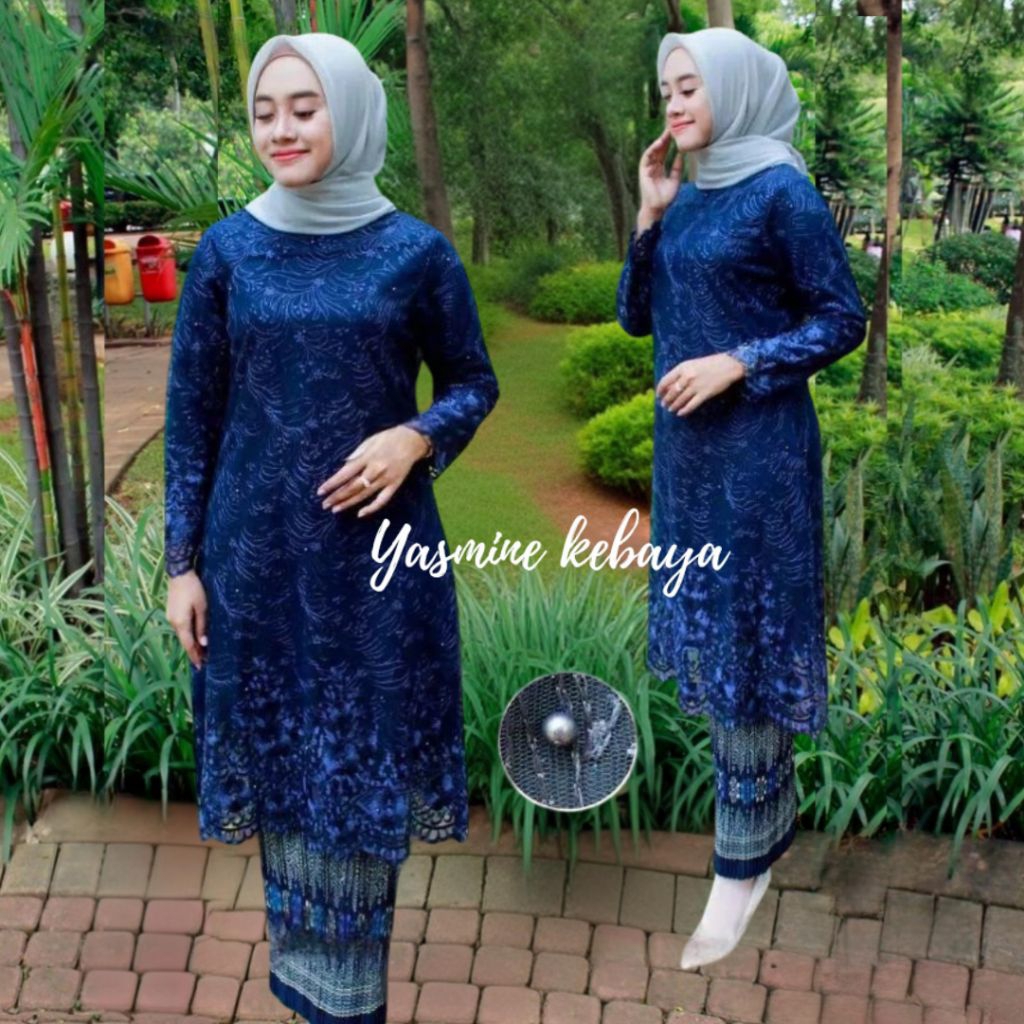 Baju Batik Couple / Couple Sarimbit / Couple Kebaya Brokat Tunik Set Kemeja Batik Modern Keluarga / Couple Batik Toraja Navy / Kebaya Navy / Biru Dongker