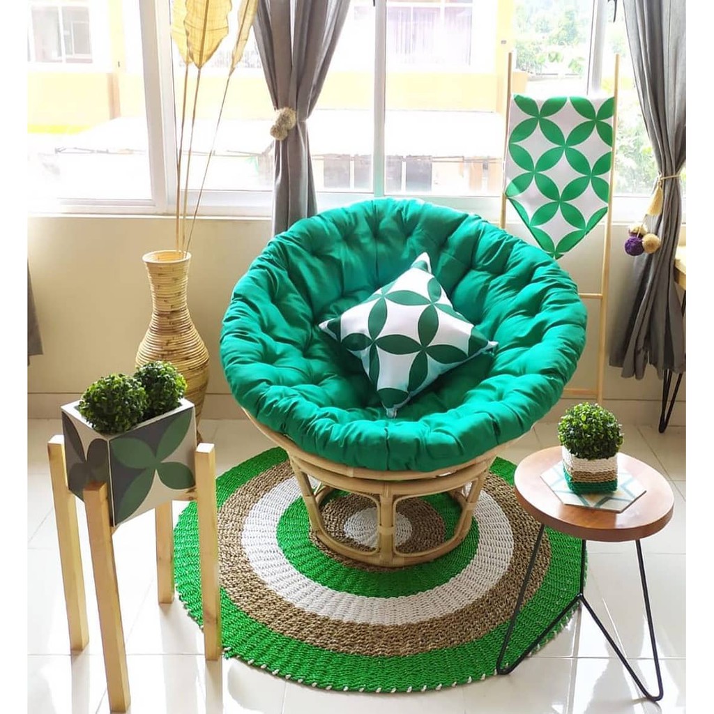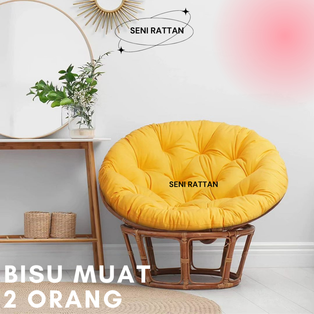 Papasan / Kursi Teras Santai Papasan Rotan Alami Bentuk Bulat Parabola Plus Bantal Empuk