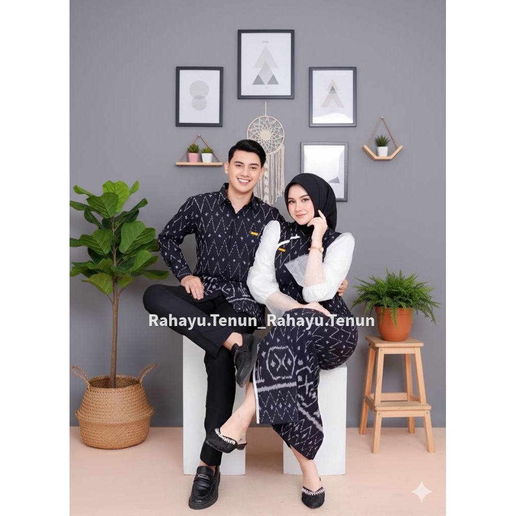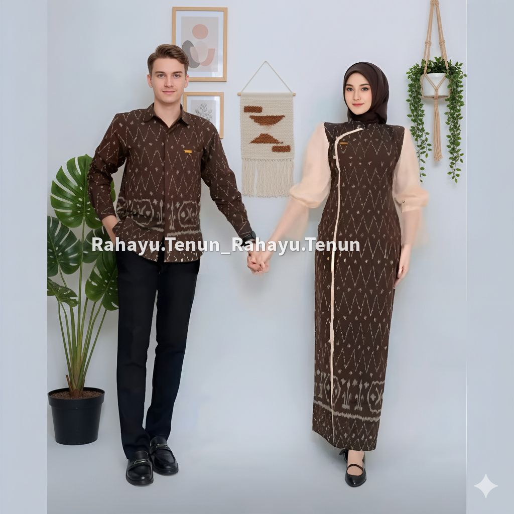 Rahayu Tenun New Series Jenar Dress Mocca Hitam Set Couple baju pasangan pria wanita kondangan prewedding natal imlek lebaran pakaian perempuan
