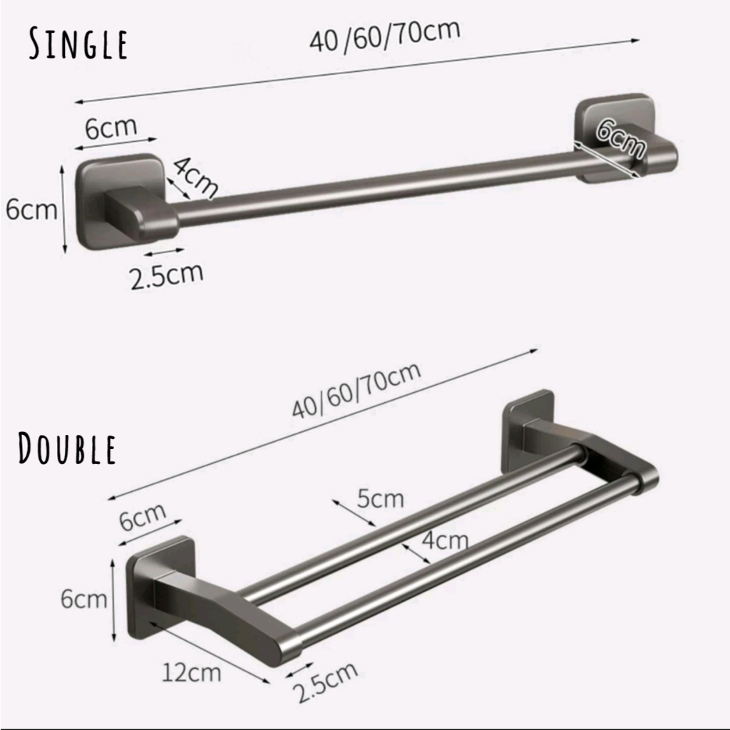 Gantungan handuk kamar mandi tanpa bor / Towel rack Kiraiya R006 / rak handuk