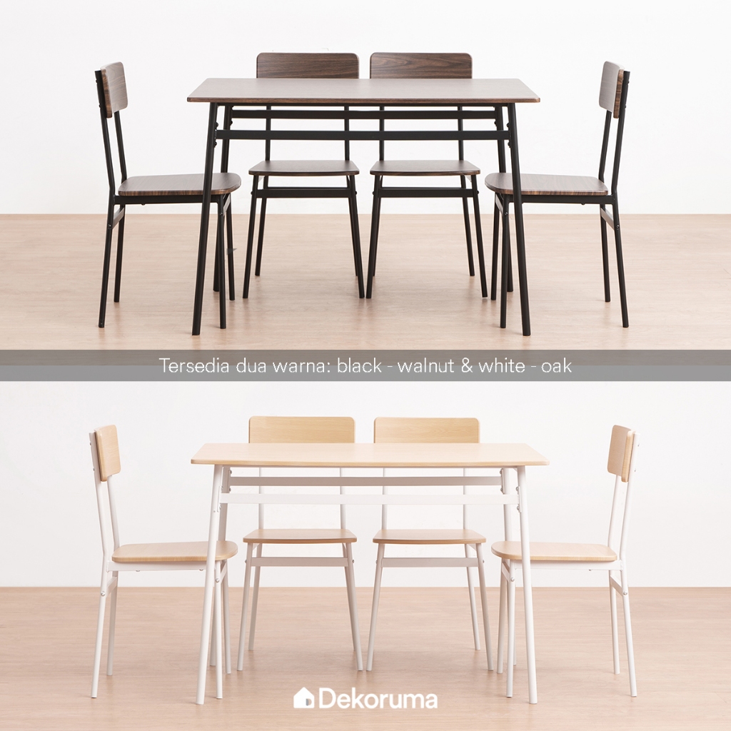 Dekoruma TOSHI Set Meja Makan dengan 4 Kursi Walnut Putih