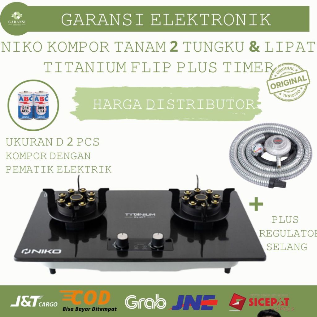 NIKO KOMPOR TANAM GAS STAINLES FLIP PLUS DENGAN TIMER WARNA HITAM TUNGKU GAS LIPAT MULTIFUNGSI