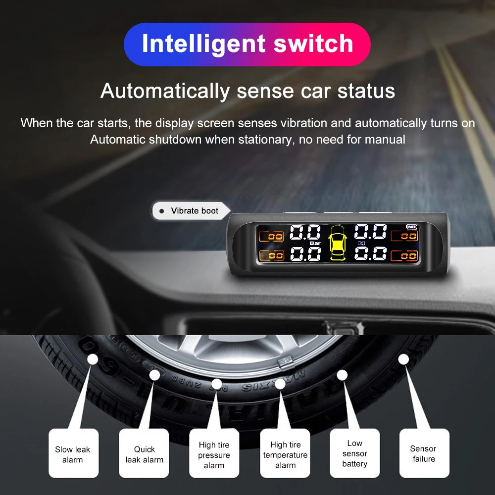 FLASH SALE TPMS Mobil Alat Ukur Tekanan Ban MobilTire Pressure Monitoring System Dengan Layar LCD Solar Power TPMS Monitor Tekanan Angin Ban Mobil Alarm