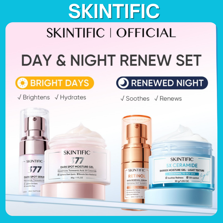 [Mall] SKINTIFIC OFFICIAL STORE 4PCS Day & Night Renew Skincare Set 377 Dark Spot + Retinol Serum Moisturizer Skintific