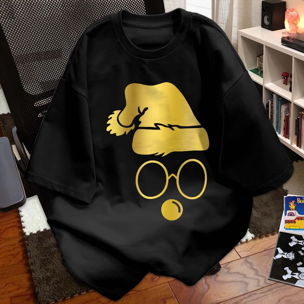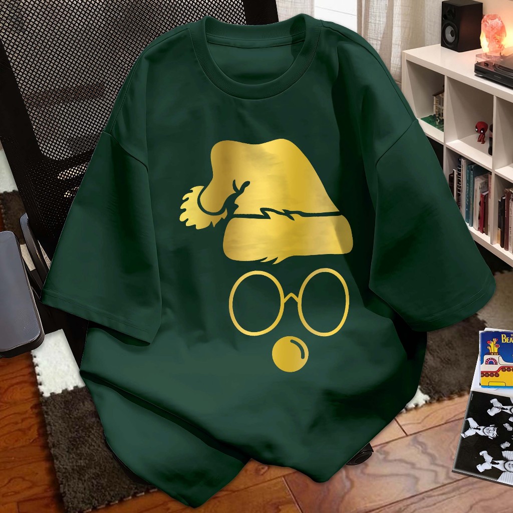 LYKKE Kaos Natal T-shirt Baju Kaos Merry Christmas I Santa Claus Hat Siluet kuningan mengkilap I Atasan Distro Xmas Rohani Seragam Couple Keluarga Natal 2025 Atasan Katun A6416