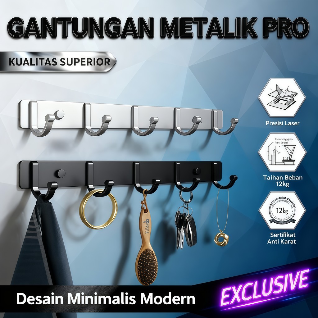 Gantungan Multifungsi Aluminium Tanpa Bor - Perekat Super Kuat untuk Dinding/Dapur/Kamar Mandi-Hook