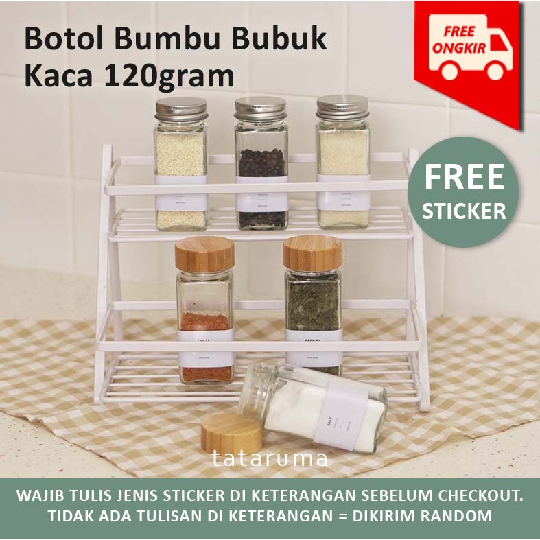 TATARUMA Atome - Botol Bumbu Bubuk Kaca Persegi Transparan Estetik 120g