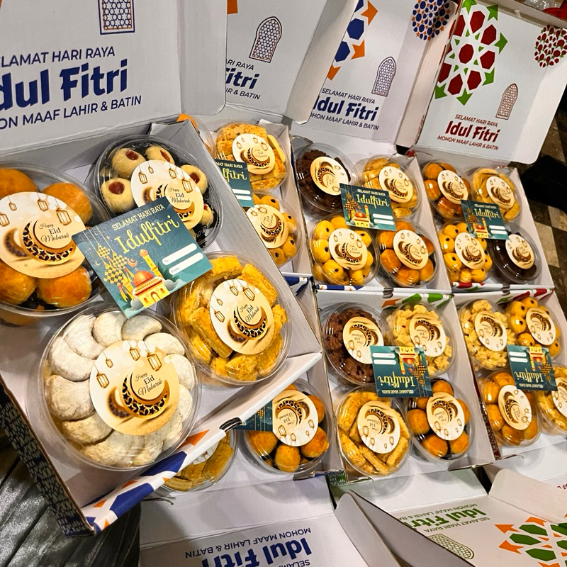 hampers lebaran sepaket hampers BEBAS PILIH VARIAN kue kering isi 4 FREE greeting card kuker Nastar putri salju