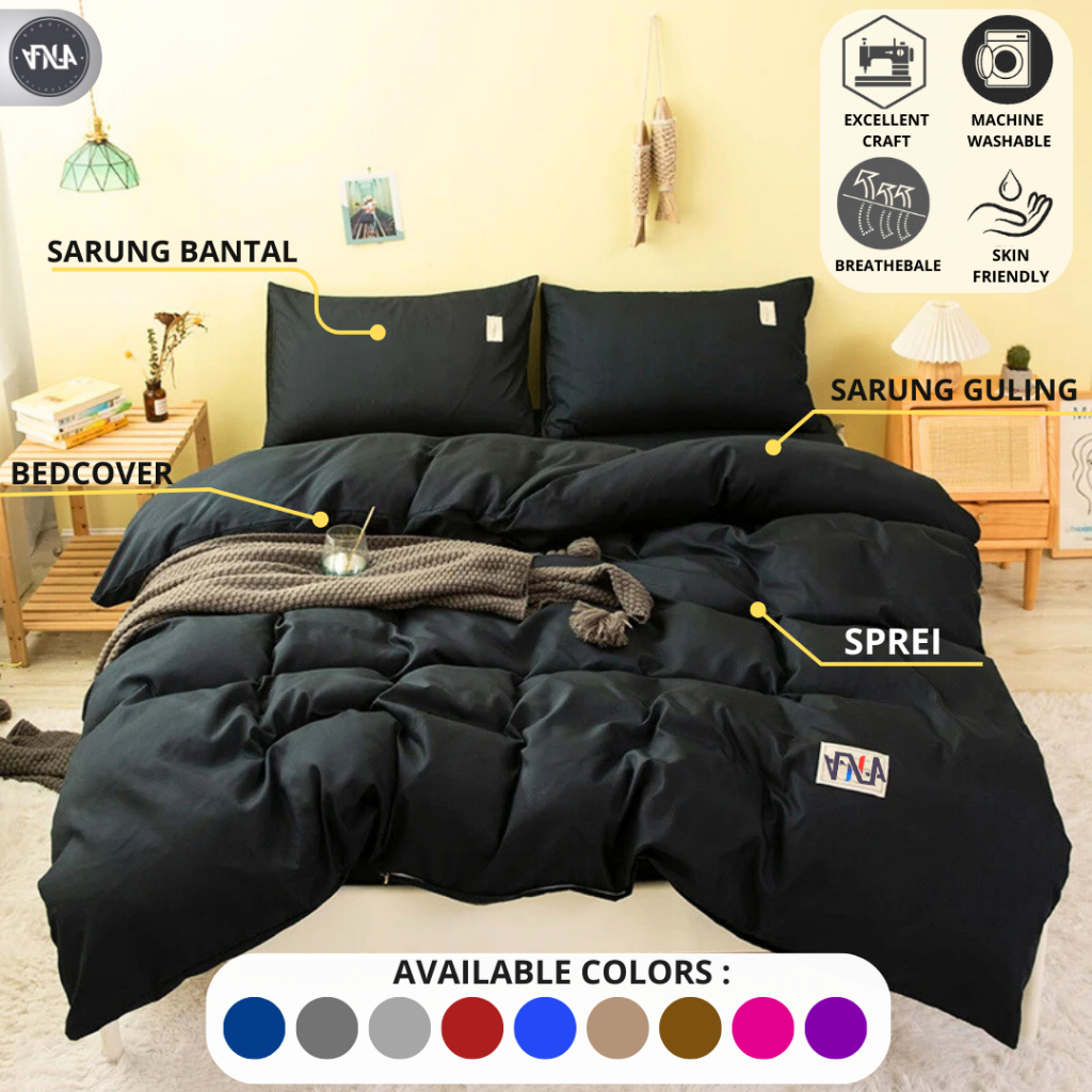 BEDCOVER SET POLOS/Bedcover+Sprei Katun Premium Halus Motif Polos 1 Warna Ukuran Single-SuperKing