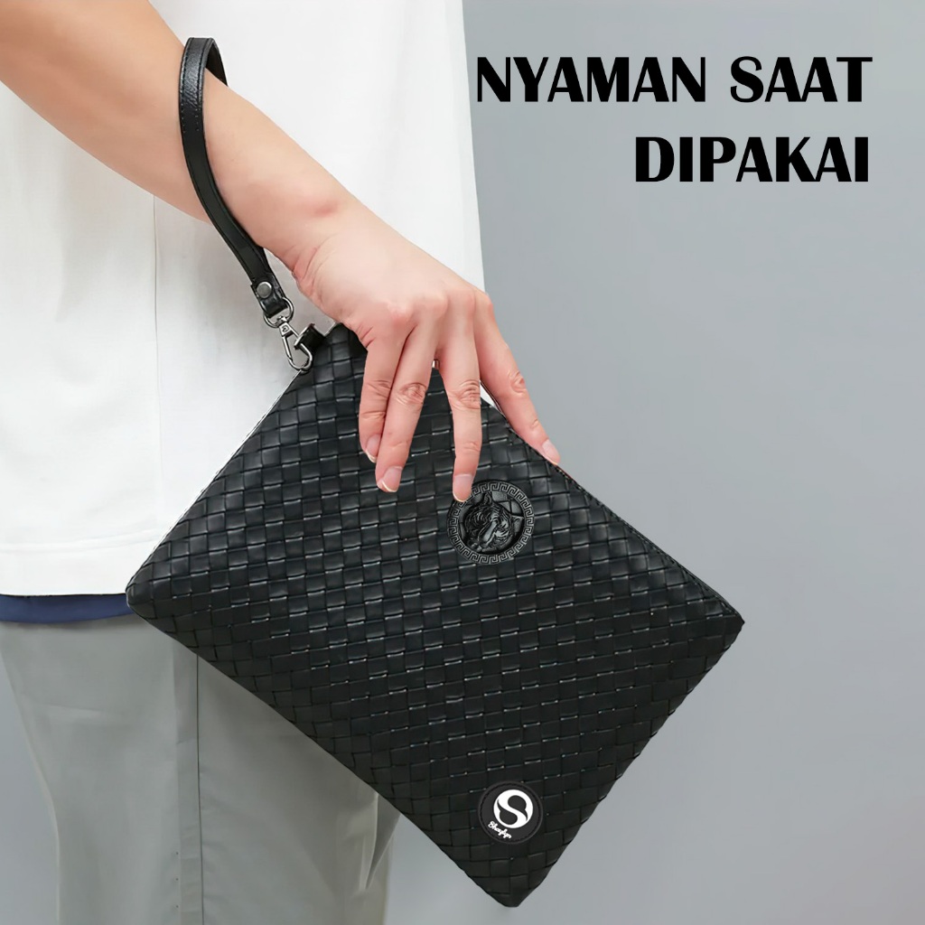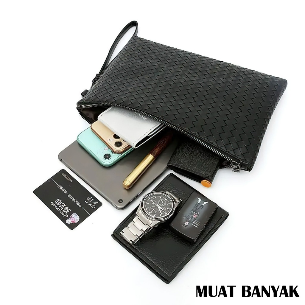 Dompet Clutch Kulit Tas Tangan Pria Motif Embos Tas Ipad Anyaman Unisex High Quality - WY 101