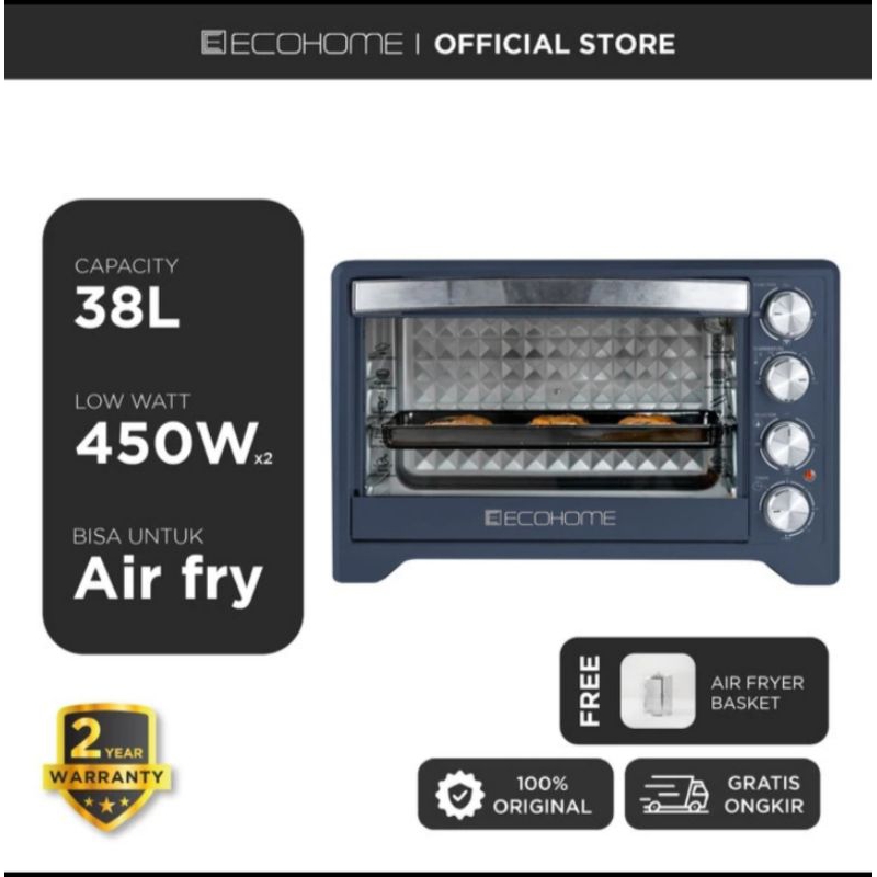Ecohome Oven Listrik 38 Liter – Electric Oven Low Watt, Pemanggang Roti Kue Ayam - Garansi Resmi