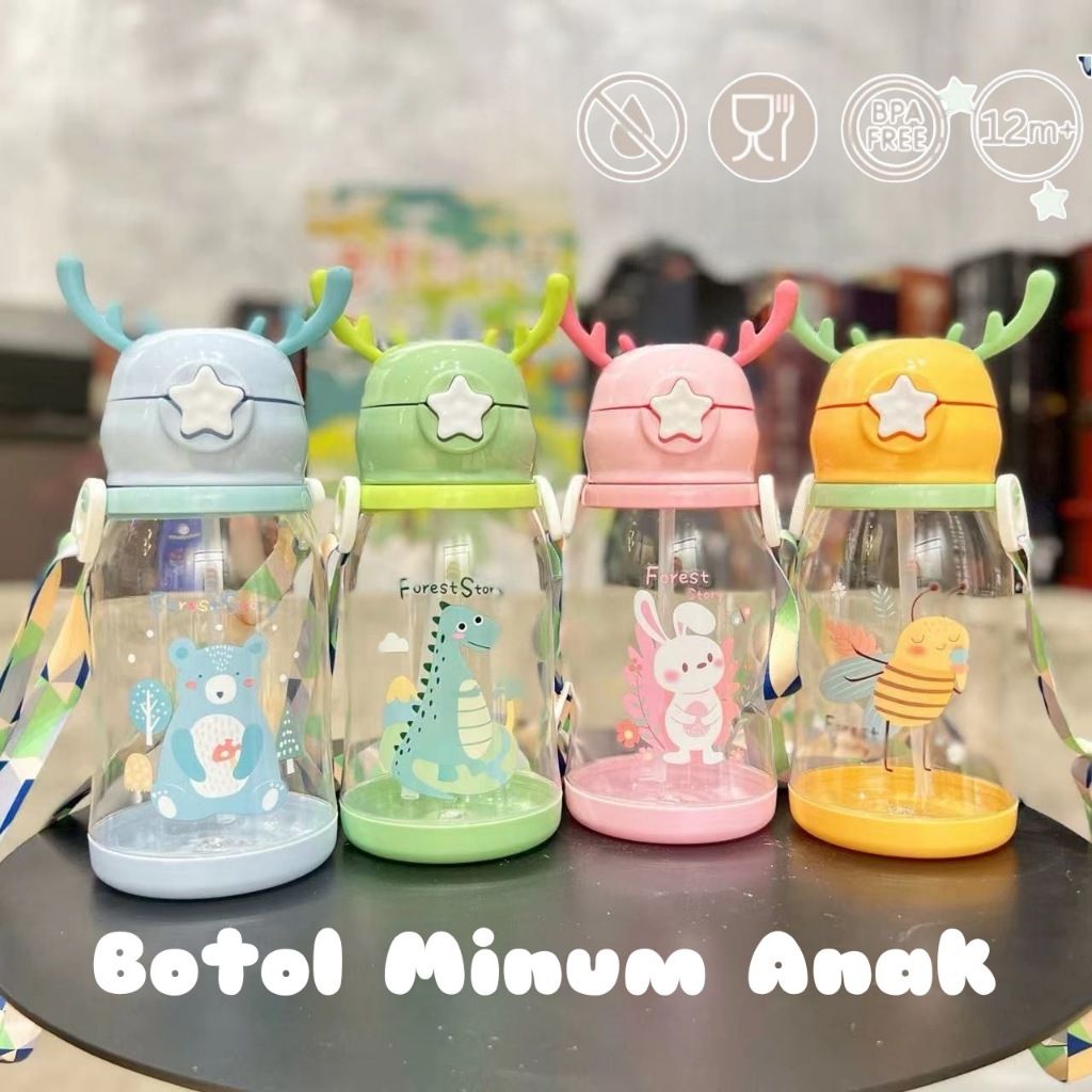 FLASH SALE BOTOL MINUM ANAK KARAKTER LUCU 700 ML ANTI TUMPAH BOTOL MINUM TANDUK RUSA TALI SEDOTAN