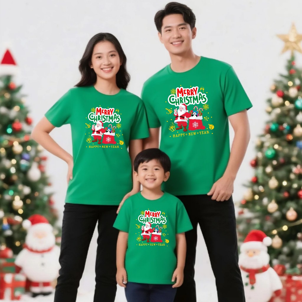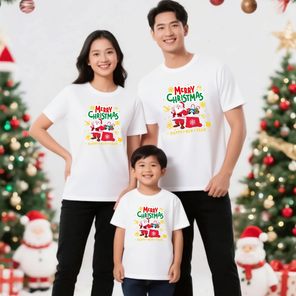 SANTA HAPPY NEW YEAR PAKAIN WANITA ATASAN KAOS MERRY CHRISTMAS NATAL FAMILY COUPLE ( HARGA SATUAN )