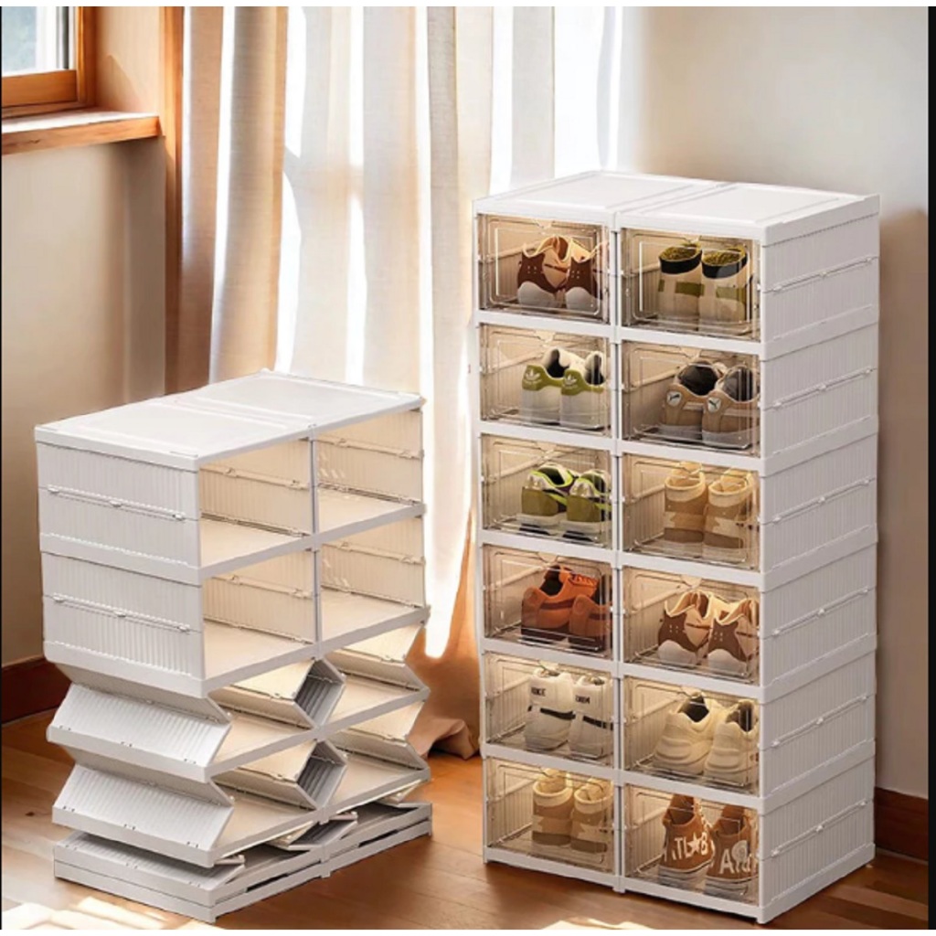 Rak Sepatu Lipat Anti Debu PICO CELO / Rak Susun Kotak Sepatu Portable Lemari Plastikk Shoe Box