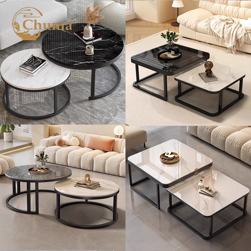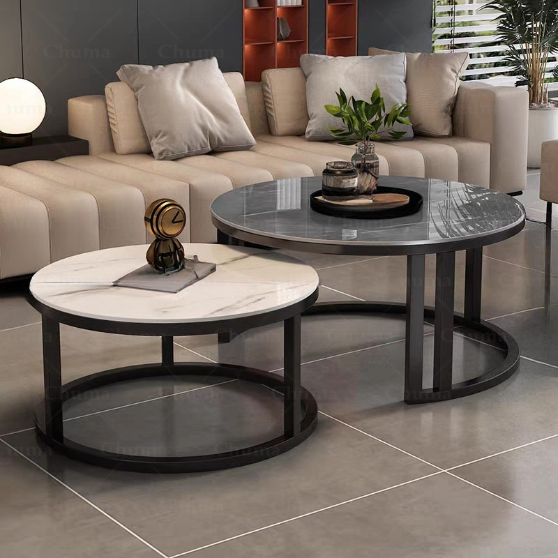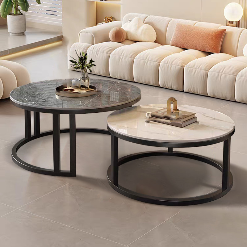 Meja Tamu Sintered Stone Meja Kopi Marmer Meja Kopi 2-In-1 Plus 70cm+50cm Meja Ruang Tamu Bundar