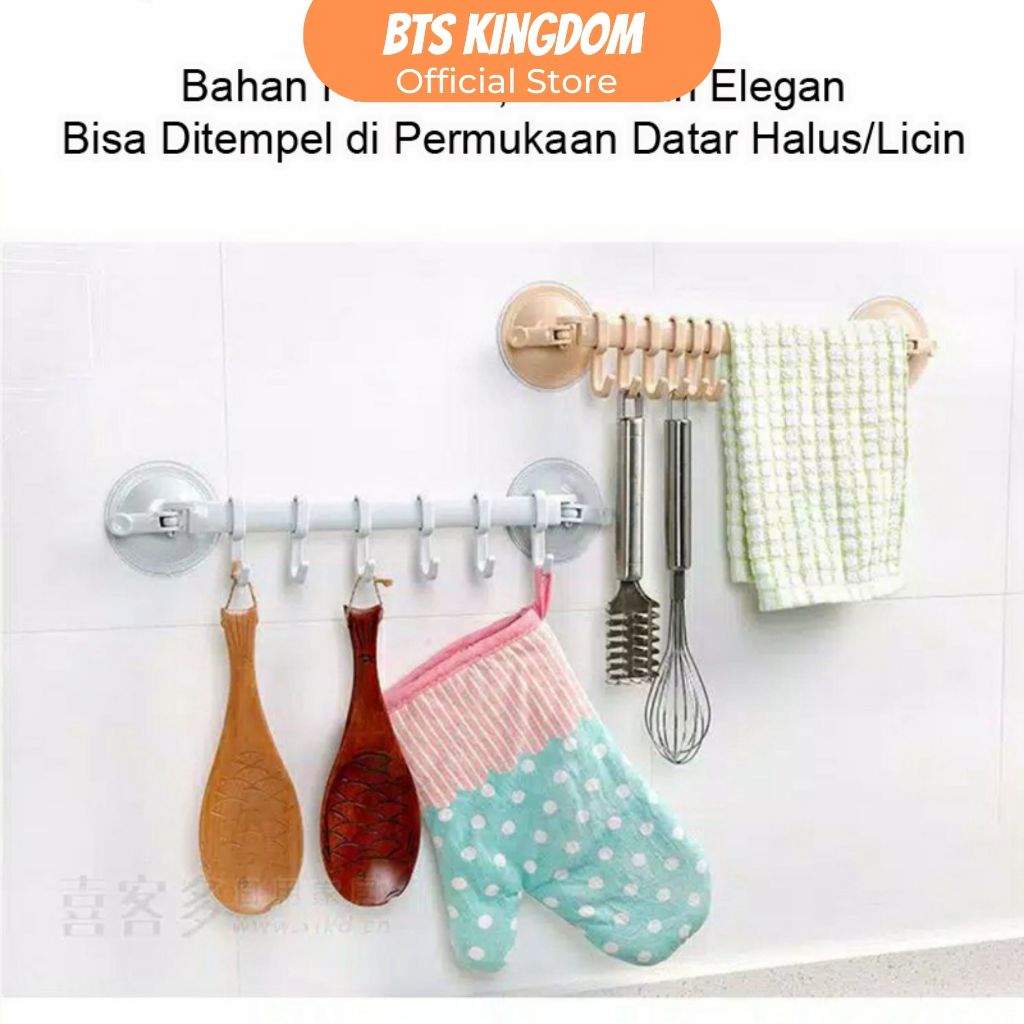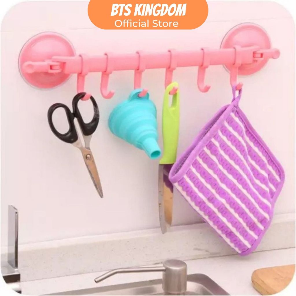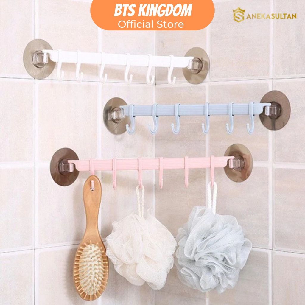 Rak Gantungan Handuk Tempel Kamar Mandi Plastik 6 Hook Pengait