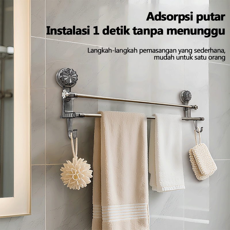 Gantungan Handuk Kamar Mandi Tanpa Bor Double Bar Towel rack Suction Cup Rak Handuk