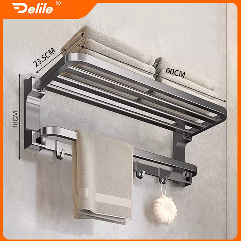 Rak Dinding Handuk Kamar Mandi/Rak Atas Gantungan Serbaguna/Rak Handuk 2 Susun/Gantungan Handuk