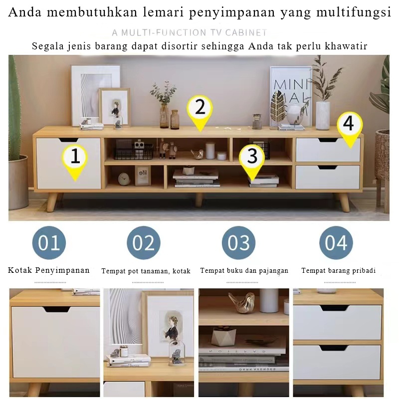 Meja TV Minimalis Modern Rak TV Kayu Serbaguna Lemari TV Ruang Tamu Scandinavian Kabinet TV Elegant