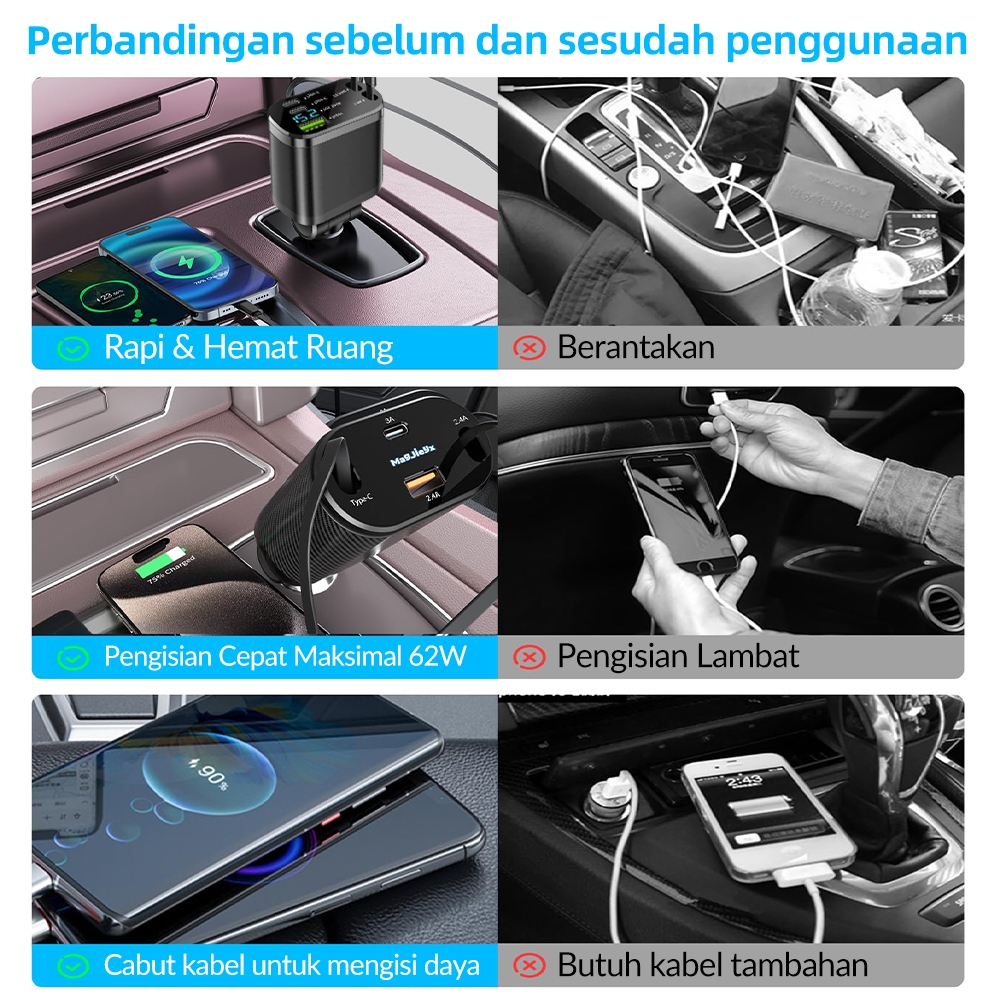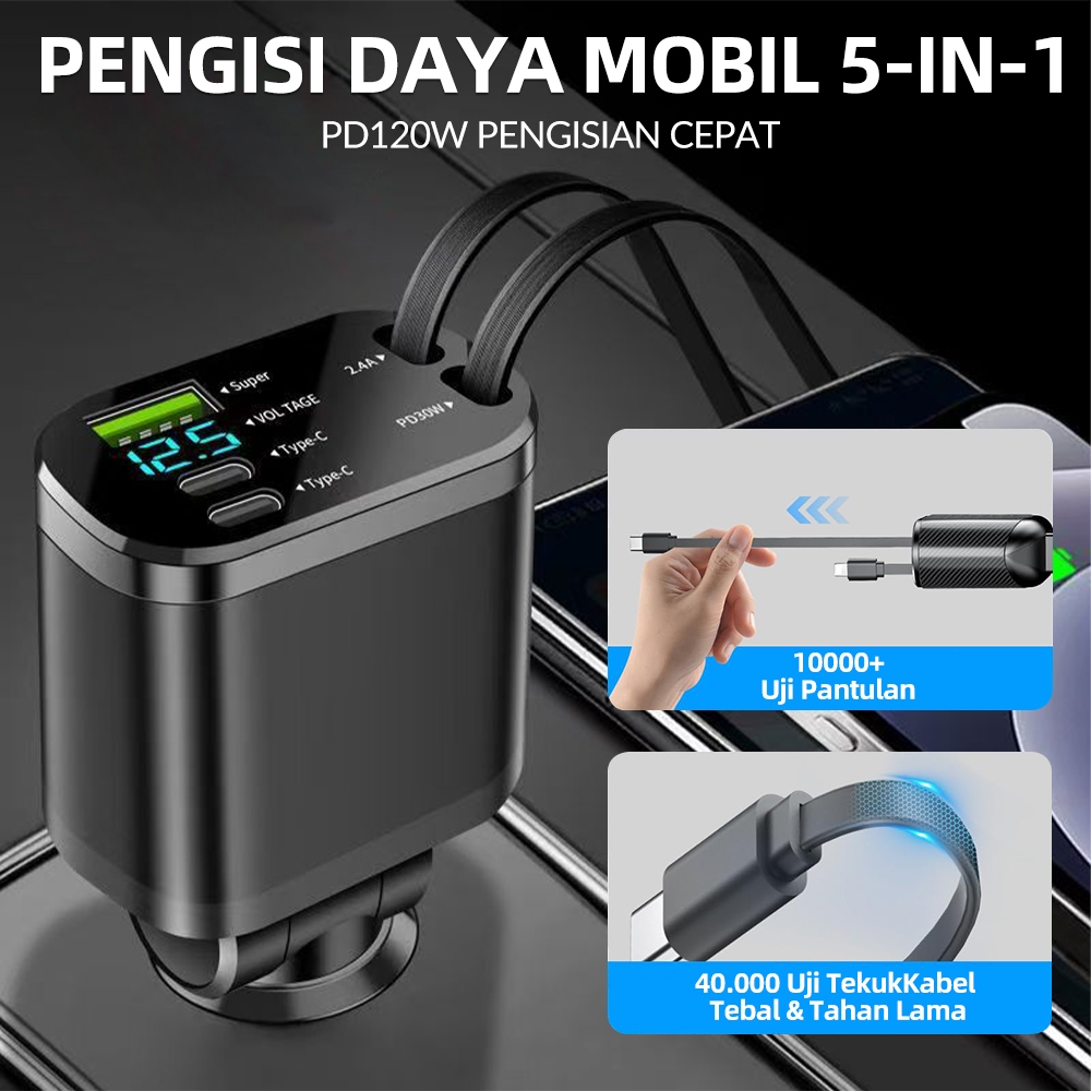 FLASH SALE 5in1 120W PD Fast Charging Car Charger with Retractable Cable for TypeC and iPhone