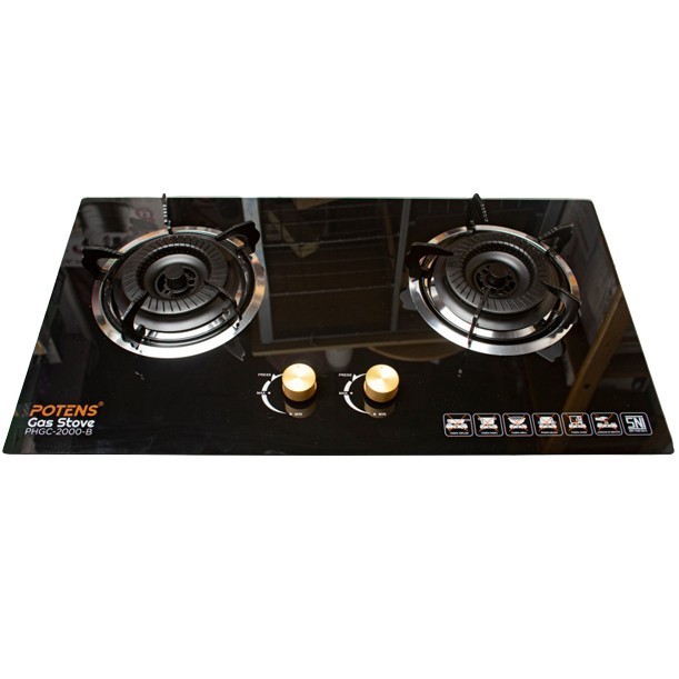 Kompor Gas Kaca Tanam 2 Tungku Eco Cook/POTENS /GMC EC2-21-Black Edition