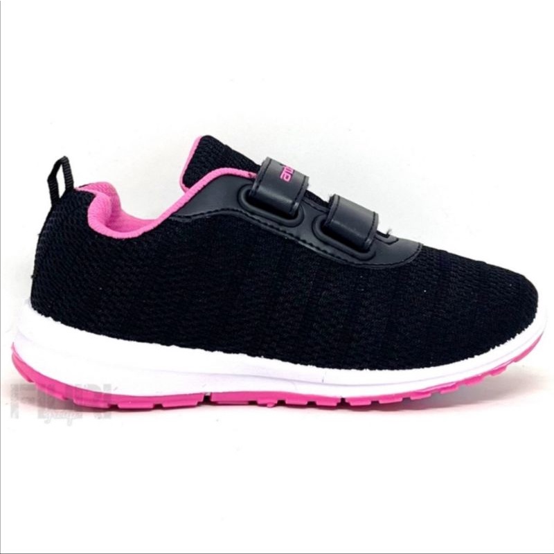 ANDO Sepatu Sekolah Anak Perempuan Cewek Kecil Hitam Pink Rebecca Original Perekat Size 29 sd 36