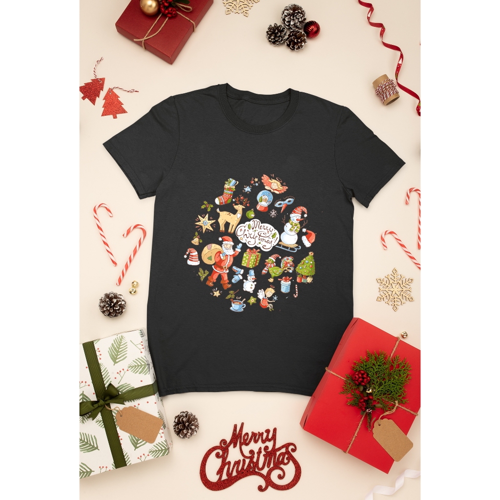 Baju Kaos Couple Family Keluarga DOODLE NATAL Natalan Xmas Chrismas Merry Tahun Baru Santa Pohon